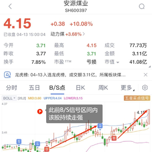 4月13日消息,市场回调,煤炭股弱势逞强! 截至发稿,安源煤业、中煤能源等多股涨停,山煤国际、山西焦化、潞安环能、运煤国际等股持续大涨。