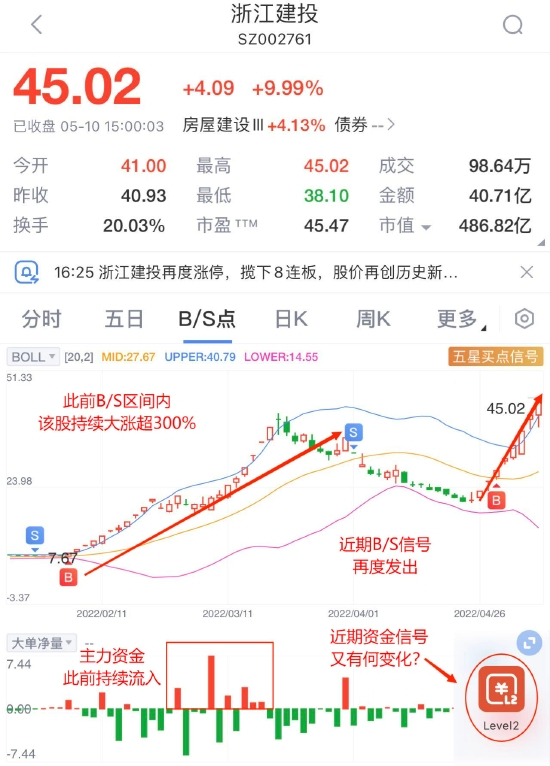 以今日大涨的浙江建投为例,通过新浪财经Level-2的大单净量发现,此前主力资金持续涌入该股,而该股也在B/S点信号区间内大涨300%,而近期B/S点信号也再度发出,同时,主力资金再度涌入该股,而近期主力资金又有何种变化?解锁新浪财经Level-2一探究竟>>