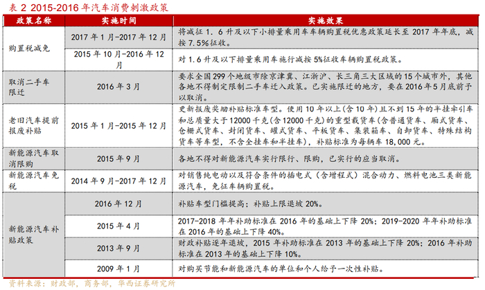 2)2015年10月-2016年(5%),2017年(7.5%)的购置税优惠,叠加老旧汽车提前报废补贴政策;
