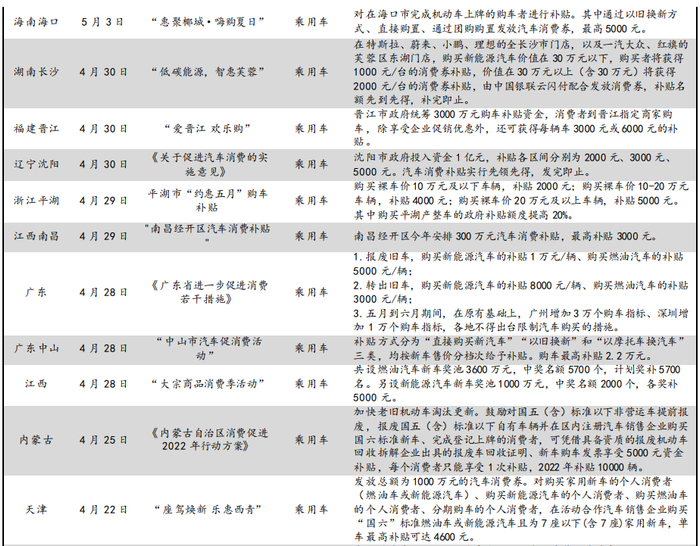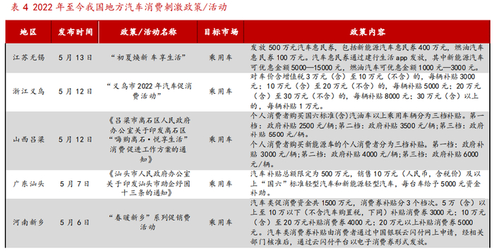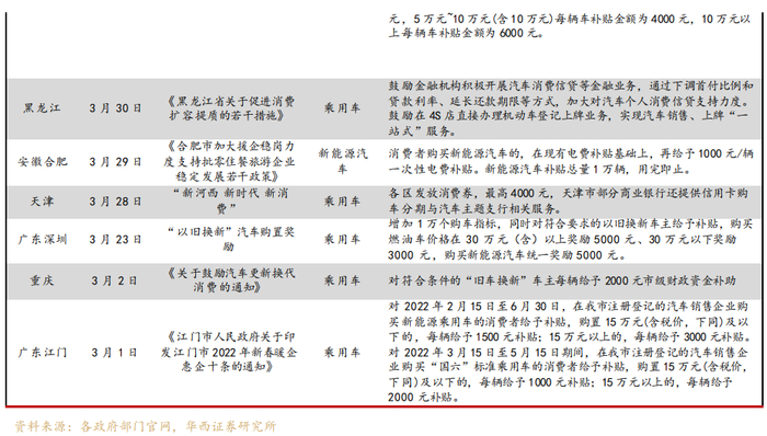 限牌城市放宽限购,看好新能源指标放开。目前7个限牌省市中,广州、深圳已放宽指标,今年5-6月,广深分别在原有指标基础上增加3万辆、1万辆。华西证券预计后续其他限牌城市有望跟进,进一步促进汽车消费。此外,新能源乘用车需求快速增长,中长期纯电及插混的技术方案并行发展,预计一线城市新能源指标将有所放开,对混动的上牌限制或有所降低。