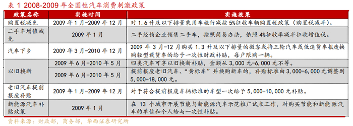 1)2009年(5%)-2010年(7.5%)的购置税优惠,叠加汽车下乡、以旧换新、老旧汽车提前报废补贴政策;