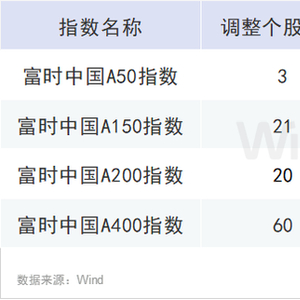 6月1日,富时罗素宣布对富时中国50指数、富时中国A50指数、富时中国A150指数、富时中国A200指数、富时中国A400指数、富时中国A小盘股指数的审核变更,该变更将于6月17日收盘后(即6月20日)生效。