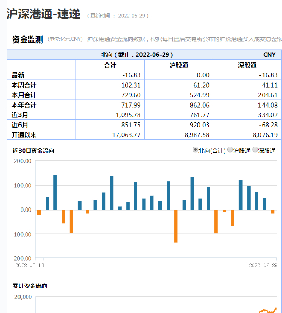 今年上半年,北向资金共计流入851.75亿元,本月大幅流入729.6亿元,南下资金共计流入2001亿港元。其中,沪股通净流入920亿元,深股通净流出68.28亿元。