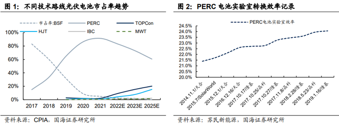 综合来看,国海证券认为,主流PERC电池的效率瓶颈已越发明显,以TOPCon/IBC为代表的新一代规模化量产技术展现出良好势头,预期将带来转换效率的又一次跨越,在经济性持续增强下产业化有望加速实现。电池技术的顺利升级有望加速光伏对传统能源的替代,进一步打开产业整体成长空间。同时在技术快速迭代的进程中,能取得相对领先地位的电池和组件企业,不仅可以享受新产品带来的超额溢价红利,并将在市场份额的竞争中占据主动,在此轮产业变革中受益。