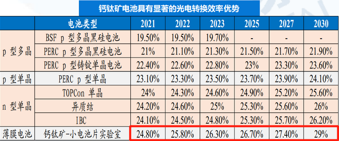 钙钛矿电池方面,隆基绿能总裁李振国日前在学术期刊发文称,未来10年晶硅电池仍会是光伏行业的主流技术,但要实现高于28%的电池效率,仍需深入理解影响电池光电转换效率的因素,并探索可有效控制这些因素的途径。如果在未来几年里钙钛矿电池的寿命和大面积效率损失问题能够得到有效改善,那么钙钛矿/晶硅叠层电池有望成为未来的高效率电池主流。