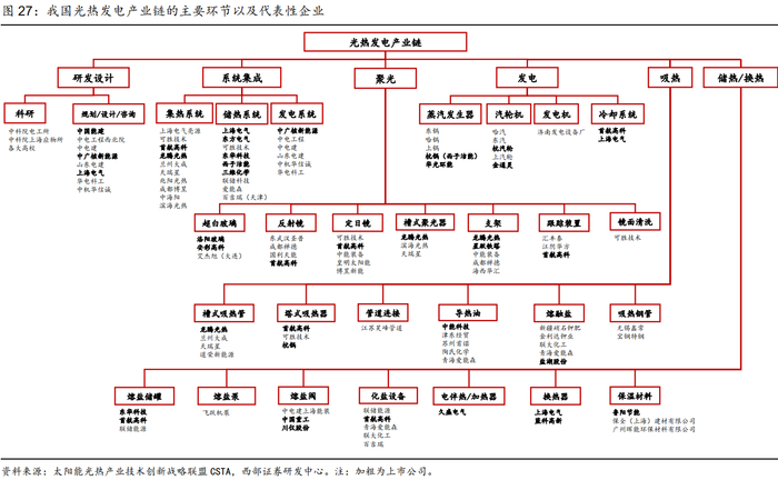 与此同时,按照IEA预测,中国光热发电市场到2030年将达到29GW装机,到2040年翻至88GW装机,到2050年将达到118GW装机,成为全球继美国、中东、印度、非洲之后的第四大市场。中航证券认为,光热发电万亿级市场才刚刚拉开帷幕。展望未来,具备光储一体化优势的光热发电潜力巨大,符合构建新型电力系统的要求,有望迎来更大发展空间