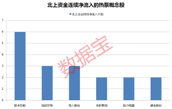 热泵概念自9月20日开始启动,部分概念股获北上资金持续青睐,连续多日增持。数据宝统计,联美控股近期获陆股通连续六个交易日净流入,合计净流入191.44万股,其他还有海信家电、雪人股份获北上资金连续三个交易日净流入。