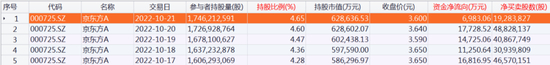 根据成交均价和加仓股数计算,京东方A为上周北向资金增持金额最大的股票,加仓金额达6.75亿元。从明细数据来看,上周北向资金连续5个交易日加仓京东方A.