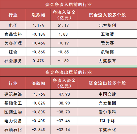 两市主力资金净流出241亿元 电子等行业实现净流入