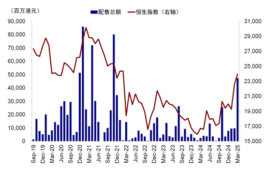 ►大股东配股:由于南向资金无法参与定增和配售,加之港股的“闪电配售”机制,使得南向资金还面临短期内巨大的供给压力。不同于A股市场再融资长达数月的审核流程,港股市场特有的闪电配售模式使得上市公司在通过董事会决策后可在1天内完成新股发行或配售旧股。3月刚刚过半,我们发现港股配售规模已高达474亿港元,已经超过2021年一月历史最高值(860亿港元)的一半,值得关注。