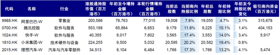 进一步从自下而上视角,1)分红板块对险资外其他资金吸引力下降。考虑港股股息税(个人投资者H股20%,红筹股最高28%;企业投资者持有12个月可免征),当AH溢价收敛至125%时港股股息率较A股基本不再具备优势。本轮行情至今,AH溢价已从春节假期前的141%回落至130.5%。当前股息率在4%以上个股中,AH溢价在125%以上已经较少。2)科技板块方面,本轮上涨过程中前五大个股阿里巴巴、快手、理想汽车、腾讯及小鹏汽车的南向流入占总体的40%。当前其南向持股比例分别为7.8%、11.6%、17.4%、20.2%及17.3%。若假设其余个股均达到与小米(20%)同一水平,则对应科技股带动约7,300亿港元。后续,分红税的豁免、个人投资者门槛的降低、更多标的和产品纳入都有望进一步增加南向资金的流入。