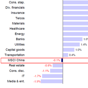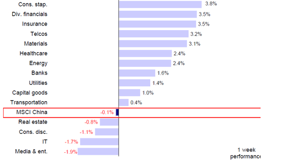 图表1:过去一周港股必选消费和多元金融领涨,但媒体娱乐及信息科技下跌