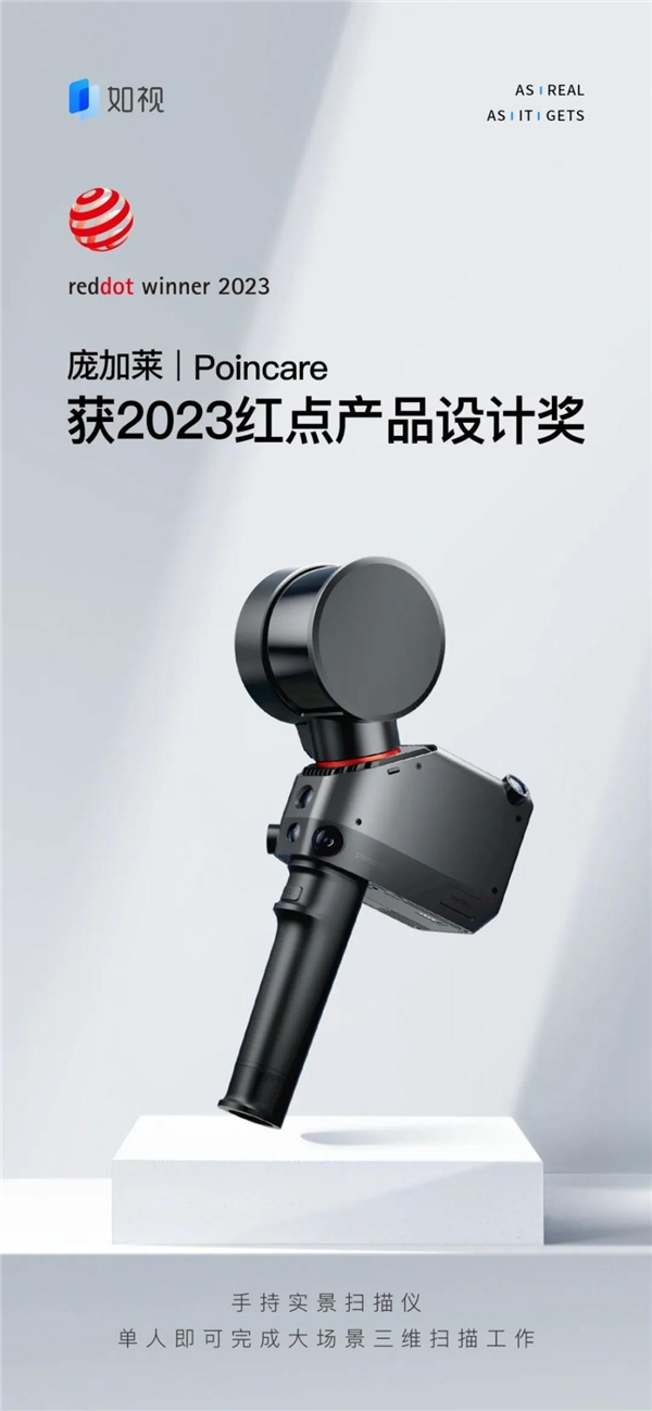 近日,数字空间综合解决方案引领者如视推出了手持实景扫描仪——庞加莱,产品一经发布,就引起了社会各界的广泛关注。与此同时,有着“设计界奥斯卡”之称的德国红点设计大奖(Red Dot Design Award)也发来了好消息,庞加莱凭借其设计理念、风格及呈现,荣获 “2023年产品设计奖”(Product Design 2023)。