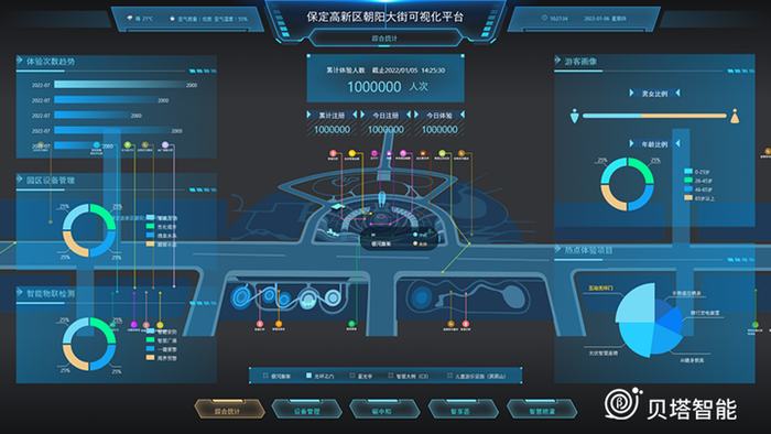 在公园建设之初,贝塔智能就对公园进行整合智慧化应用构建园区全场景的服务内容,并对公园服务、设备、客流、物业、环境等各业务线进行数字化构建,在提供可视化管理和智慧化决策能力的基础上,形成的公园数据资产来驱动公园各业务线条的可持续运营。