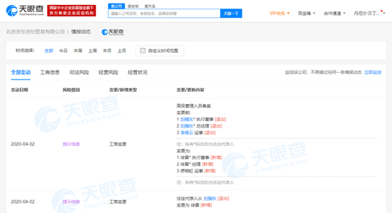 刘强东卸任京东法定代表人、执行董事、总经理