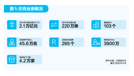 截至2020年6月末,贝壳平台已覆盖中国103个城市,入驻265个地产经纪品牌,连接4.2万家门店,45.6万名经纪人。