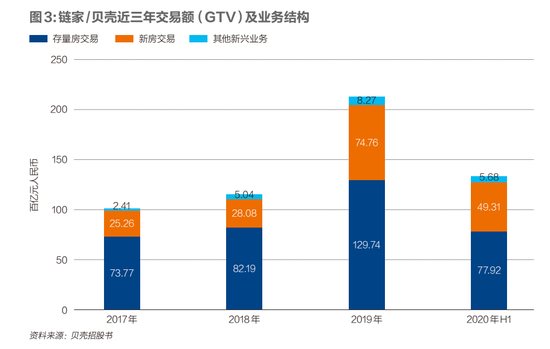 2019年,贝壳平台实现GTV(Gross Transaction Value,交易总额)2.1万亿元,超过京东的2.08万亿元,仅次于阿里巴巴的7.053万亿元,成为中国第二大商业平台,其中来自链家之外的GTV占46.9%。