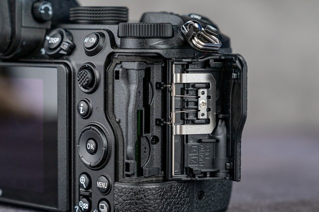 尼康Z5采用了双SD卡槽设计,这也是尼康的传统,尼康非常多的相机都采用双卡槽设计。用户可以在菜单中选择双卡槽是备份使用还是扩展使用,非常实用,这也是笔者自己非常喜欢的一个贴心设计。