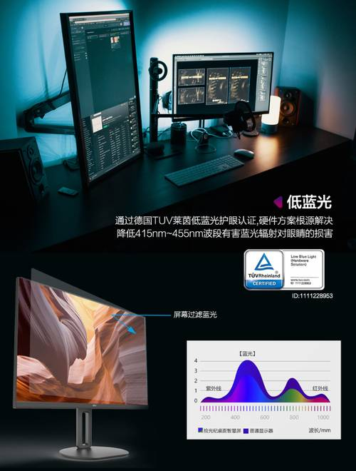 首先拾光纪SA27D0桌面智慧屏搭载的京东方低蓝光技术通过了德国TUV莱茵低蓝光护眼认证,通过降低415nm-455nm波段的有害蓝光辐射来保护用户的眼睛不被损害。同时通过京东方独有的画质调整技术,保证低蓝光的情况下,达到优秀的画质显示。而不像普通的显示器为了达到低蓝光,而降低对画质显示质量的要求。
