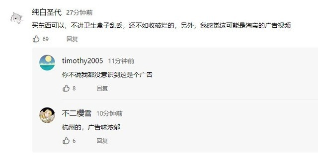 在看过“95后女生购物太多被怀疑收破烂”的相关报道视频后,很多网友表示这是一则广告植入视频吧?
