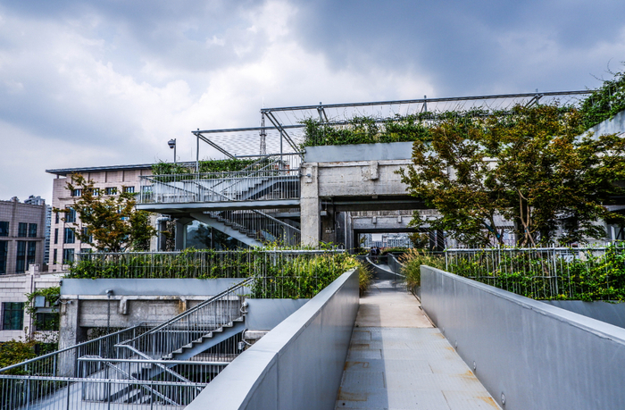 “绿之丘”恰好形成了一个立体公园,衔接道路前后地块,实现跨路立交。