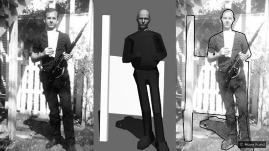 法里德和同事在2009年、2010年和2015年发表的系列论文中研究了这张照片。他们根据奥斯瓦尔德的入狱照、身高、体重以及枪的重量,建立了现场和人物的3D模型。他们发现照片中的影子是来自于单一光源的,奥斯瓦尔德脸上的阴影使得他下巴看起来比入狱照中的更宽。