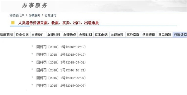 近几年时间,对于人类遗传资源的监管收紧明显,这可能与中美之间国家关系日益紧张有关。2018年10月24日,科技部官网最新更新6条处罚信息,复旦大学附属华山医院、华大基因、药明康德、昆皓睿诚、厦门艾德生物、阿斯利康6家单位涉及其中,多家单位被处罚的原因涉及人类遗传资源的出入境管理,此为科技部首度公开涉及人类遗传资源的行政处罚。