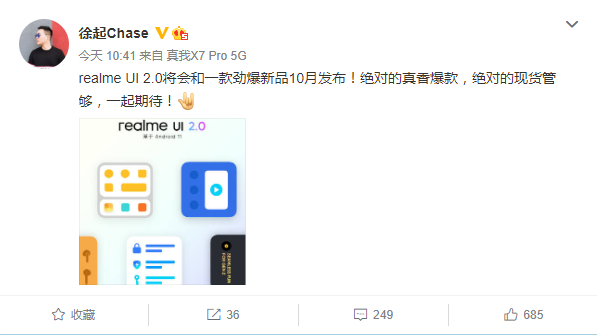 realme新机10月发布 副总裁:绝对真香爆款 绝对现货管够