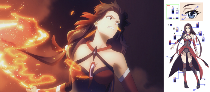 本季人物的颜色设计和渲染会根据每一场场景的光影、色相、情绪氛围的不同,做实时调整。由专职岗位的色彩总监来把控每个镜头中的人物和场景融合效果,通过对当前镜头中素材颜色的细致分析来给出人物各个区域色值的微调方案。比如说人物在使用火系技能时,向火侧肤色会因为火光的映照而偏橘红,而背火侧则形成阴影,而且这种光阴效果会随着人物的动作、环境的变化而自然地动态演变。