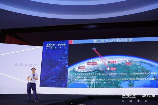 “墨子号” 有三大科学实验任务。第一个是星地之间的量子密钥分发,在1200公里的距离上,目前每秒钟点对点可以送十万个安全密钥,这比相同距离光纤的传输速率提高了20个数量级。第二个任务是实现了德令哈到乌鲁木齐,德令哈到丽江之间,距离都差不多是1200公里的量子纠缠分发,验证了即使相隔上千公里,量子纠缠之间的诡异互动也是存在的。第三个任务是实现了上千公里的量子隐形传态,这些工作都是在2017年完成的。“墨子号” 实现的天地之间的量子通信,再加上 “京沪干线” 所实现的千公里级光纤城际量子通信网络,一起构成了天地一体化广域量子通信网络的雏形。这是国际上量子信息领域一大标志性事件。