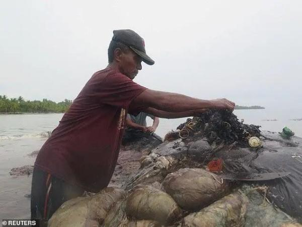 让人印象深刻的,是在印尼海滩上搁浅的一头抹香鲸。当鲸鱼尸体被打开后,胃里竟然塞满了12斤塑料垃圾。