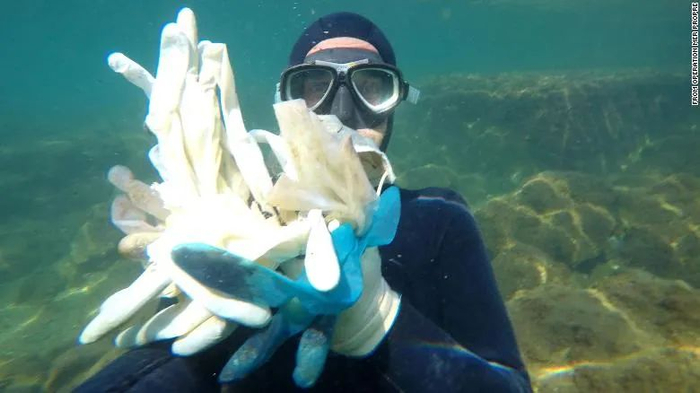 “如果你把它们扔到街上,下雨的时候,这些手套和口罩最终会飘到海洋里。”