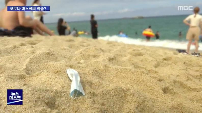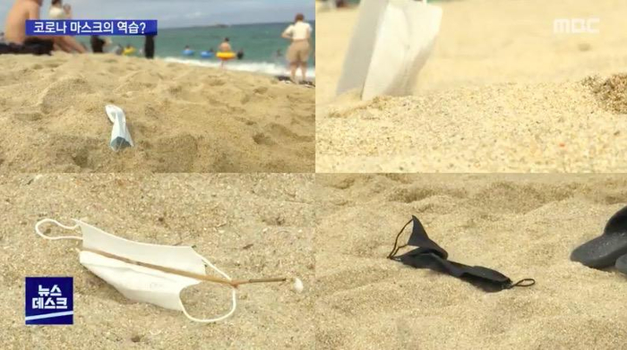 在韩国,MBC也加入了废弃口罩的报道。随着越来越多的当地人参观海滩,丢弃口罩的数量逐步增加。