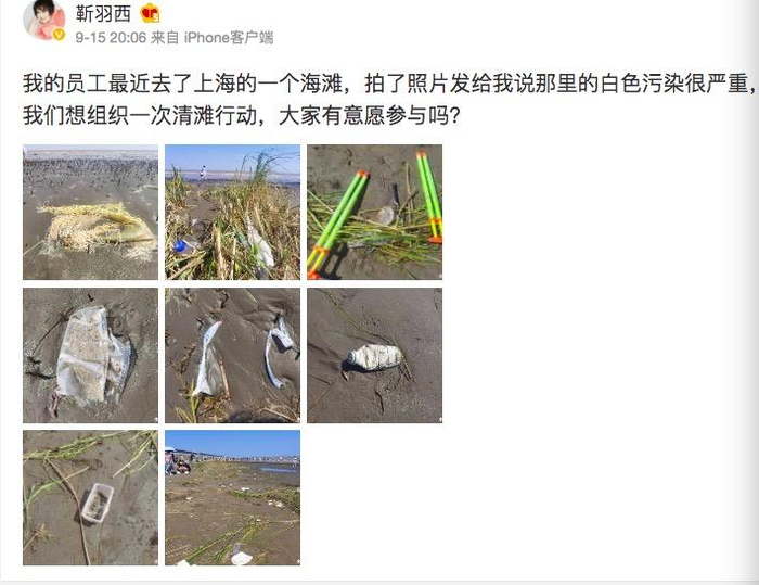 但在最近,靳羽西称员工在前去该海滩时,发现到处都是白色垃圾。其中能看见许多丢弃在草丛、淤泥里的口罩。