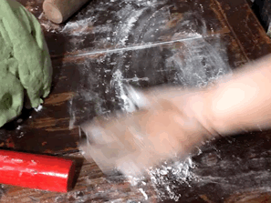 麦饼筒不同于嵌糕,后者只需蒸好米粉,用机器或大石头锤子打成年糕。而麦饼筒,需要挑选鼠麹草的嫩芽,煮后和面粉糯米粉按比例和好、擀成饼再烙。