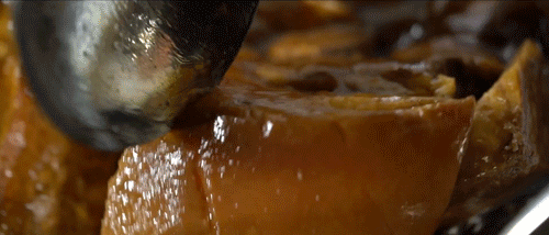尽头必是煮肉的锅,锅底被火照的红彤彤,锅里咕噜咕噜冒着热气。这是每家嵌糕的灵魂:卤肉藏在油花下,瘦肥未知,神秘兮兮。当然现在其他店还有卤猪皮,卤香肠,卤肥肠,但在老林这种老温岭人看来是对嵌糕的不敬。
