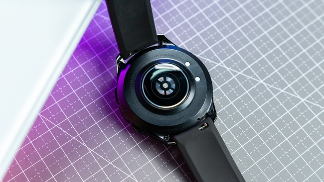 在表底为光学传感器区域以及磁吸充电接口,值得注意的是这部分并非平面,而是一个户型,可以与手腕接触面积更小,同时还可以检测到身体的各项指标。在传感器区域还有一层特殊的菲涅尔膜片,为了保持长久的光泽还不影响准确性。