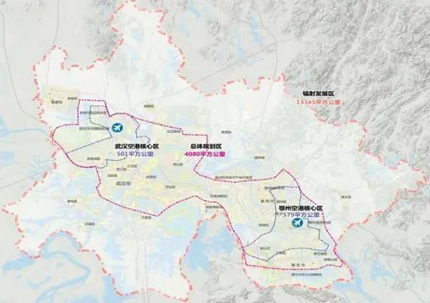 据悉,该规划将依托武汉天河国际机场和湖北鄂州顺丰机场两大空港,统筹空港周边发展要素,共同推进武汉城市圈航空港经济综合实验区建设。根据估算,武汉城市圈航空港经济综合实验区总体规划发展区的面积约为4080平方公里,航空港经济发展辐射发展区面积可达13345平方公里。