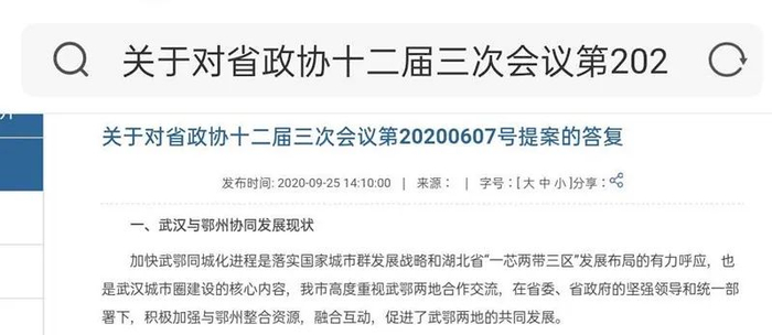 近日,武汉市发改委针对湖北省政协十二届三次会议第20200607号提案作出回复,其中提到“鄂州并入武汉属国家重大行政区划调整”。