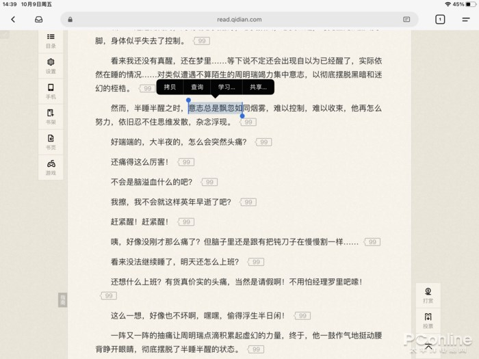 “网页限制解除”脚本下,原先禁止复制的书城网页,也可以复制文字了