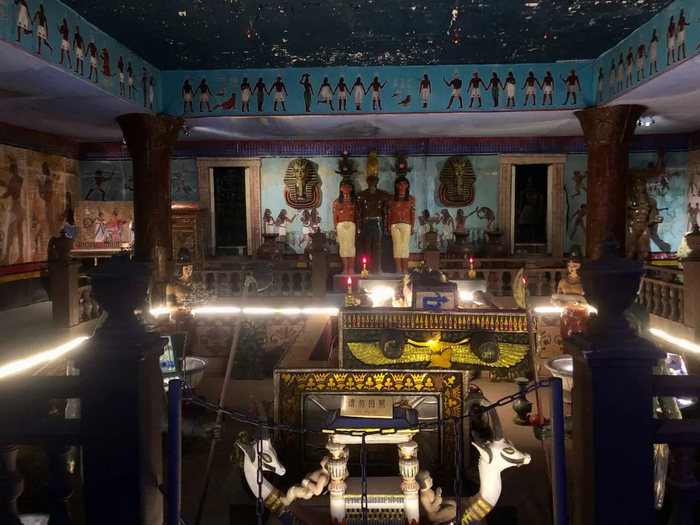 由四位两米高的金色法老把关
