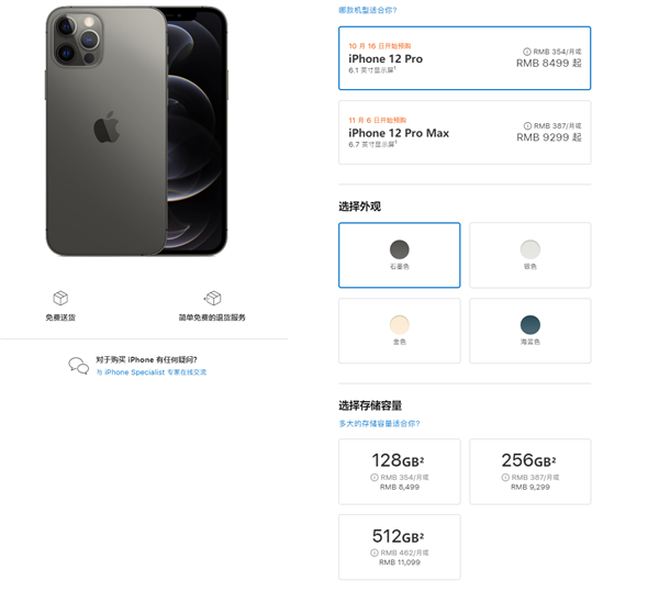 128GB 9299元、256GB 10099元、512GB 11899元,石墨色、银色、金色、海蓝色。