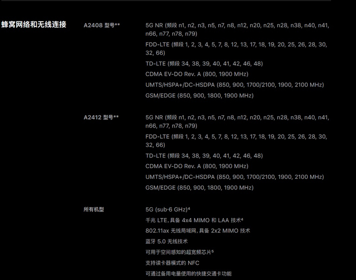 美国版iPhone 12 Pro还支持5G毫米波频段。
