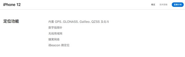 苹果(中国)官网显示,iPhone 12系列(包括Pro系列)在定位功能方面,内置GPS、GLONASS、Galileo、QZSS及北斗,支持数字指南针、无线局域网、蜂窝网络以及iBeacon微定位功能。