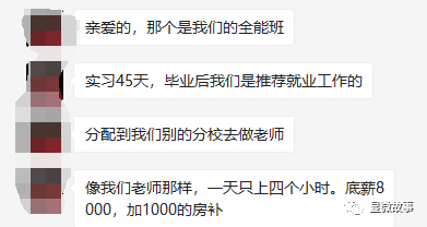 每天只要授课4小时,就能拿到7000块钱的底薪,还额外有提成,不同的是她上的是全能培训班,得上45天。