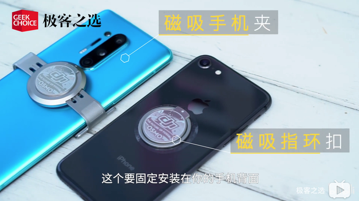 发现了没?MagSafe 的车载充电器是不需要在手机上安装金属片的,这就是内置磁体的优势之一。前不久发布的大疆手机云台 4 加入了磁吸快拆设计,不再需要进行复杂的安装和调平工作,其实理念和 MagSafe 某种意义上是相通的。但它的实现方式是在手机上装一个金属的指环支架(或者安装金属夹),假如 iPhone 本身就带磁体,那不是方便很多?