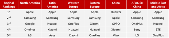根据调研机构 Counterpoint 的 2020 Q1 的数据显示,在 Counterpoint 划分的高端机市场中,一加在北美和欧洲等发达地区排名进入了前五,北美是第四,西欧是第三,东欧是第五。作为上榜品牌中最年轻的企业,一加展现了巨大的潜力。