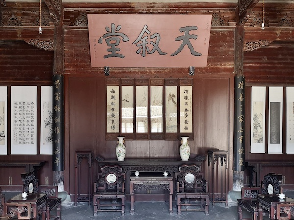 整个天叙堂横面宽达44.79米,进深达10.92米,东西两侧各有夹楼,也是旧时主人主要的会客与起居之处。厅堂两侧还悬挂有“乐善好施”与“输财保国”等匾额,出自蒋介石和于右任等当时政要之手。