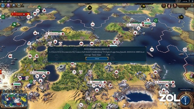 《文明6》则是一款更考验CPU能力的游戏,游戏后期地图上密密麻麻的建筑、单位、不仅帧数会变得非常低,还会在拖拽屏幕时出现卡顿的情况,而且玩家在每回合结束操作等待AI行动时,时间也会随着游戏进程而加长,一个多核性能极强的处理器对于这款游戏就非常重要了。