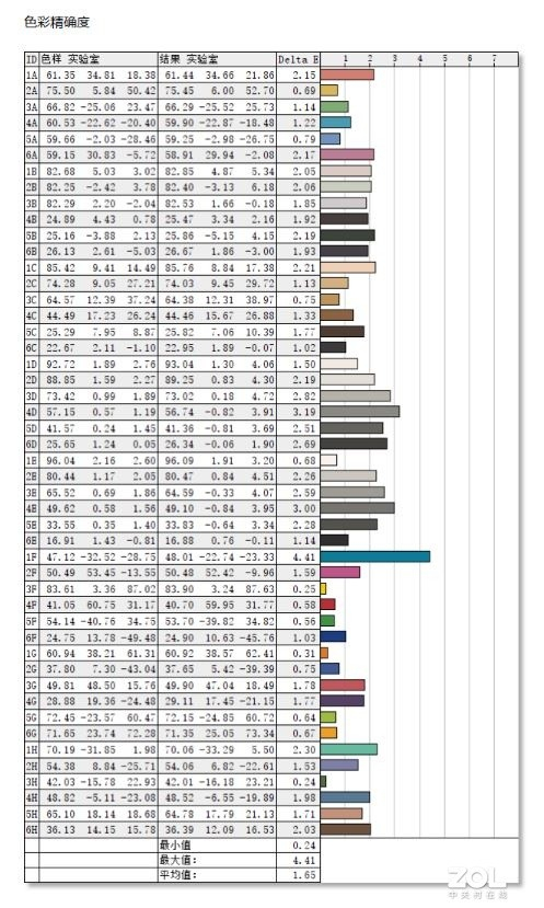 实测这块屏幕覆盖99%sRGB色域,最大亮度363nits,色彩精准度平均值△E=1.65,屏幕观感优秀,亦可胜任一些对色彩不太苛刻的设计工作。